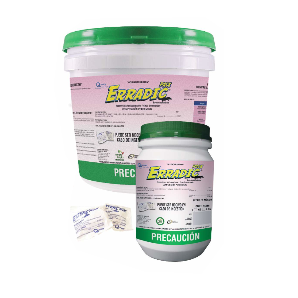 El rodenticida bromadiolona Erradic en almohadillas es la solución profesional más efectiva para el control de roedores en instalaciones pecuarias, almacenes y centros de acopio. Con una concentración de bromadiolona al 0.005%, estas almohadillas de cebo fresco garantizan la eliminación de ratas y ratones con una sola ingesta.