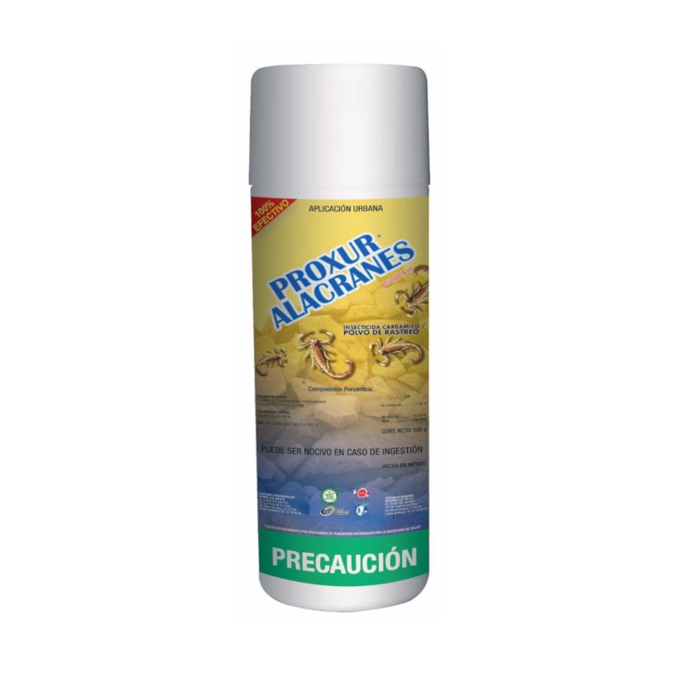 El talco insecticida Proxur 1% es tu aliado más confiable para el control efectivo de alacranes en espacios domésticos y comerciales. Su formulación con Propoxur al 1% garantiza una acción letal directa contra estos arácnidos peligrosos.