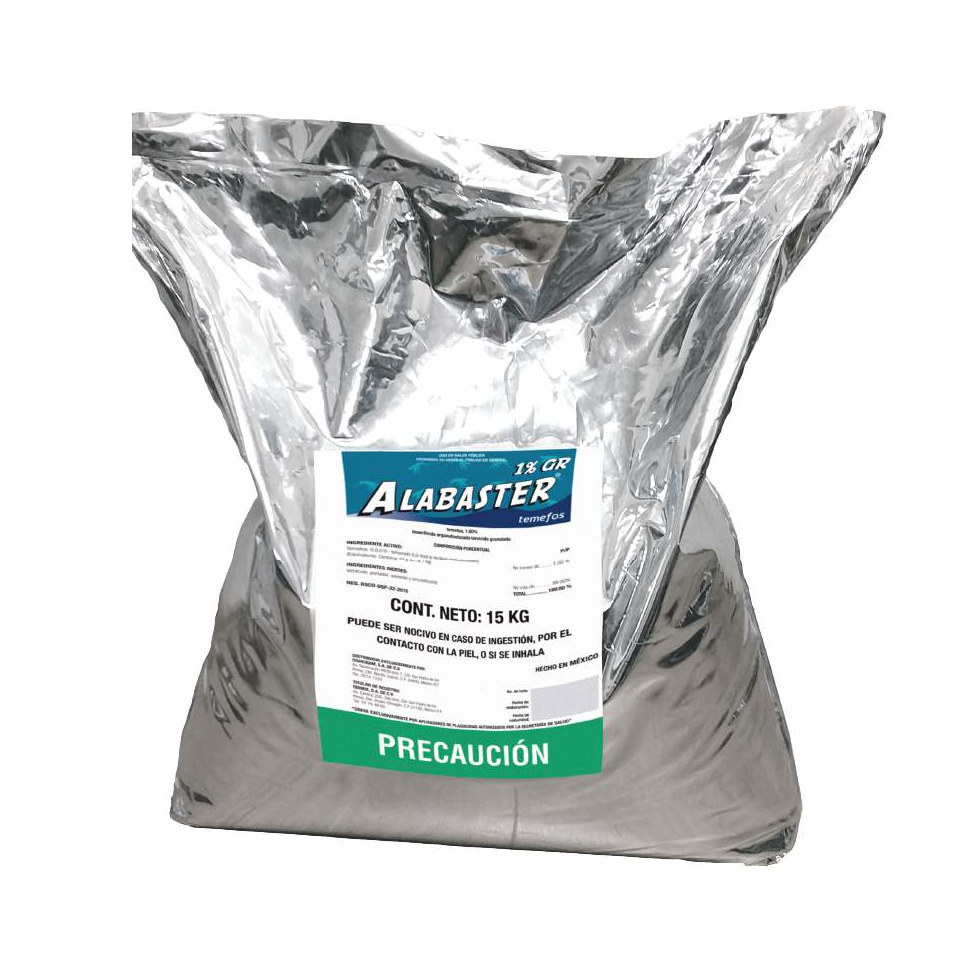 Perfecto para campañas municipales, clínicas veterinarias y programas agropecuarios. El Temefos Alabaster es tu herramienta profesional para mantener bajo control las poblaciones de mosquitos desde su origen. Solicita tu saco de 15 kg y fortalece tus programas de prevención.